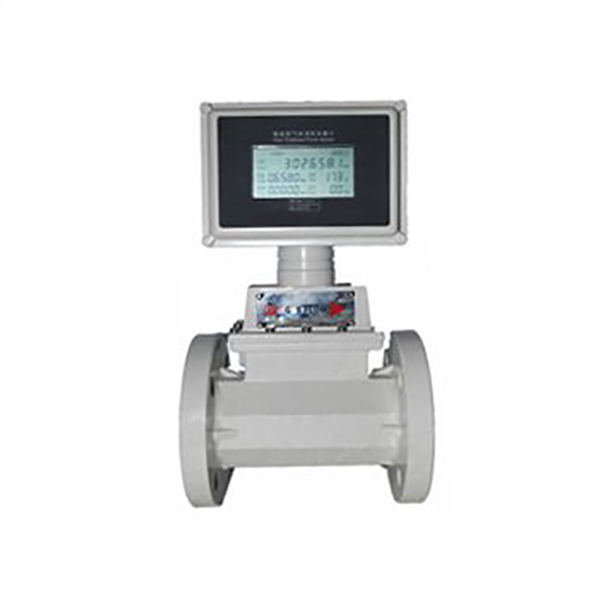 当流体流入气体涡轮流量计时,在进气口专用一体化整流器的作用下得到整流并加速,由于涡轮叶片与流体流向成一定角度,此时涡轮产生转动力矩,在克服摩擦力矩和流体阻力矩后,涡轮开始旋转。在一定的流量范围内,涡轮旋转的角速度与流体体积流量成正比。根据电磁感应原理,利用磁敏传感器从同轴转动的信号轮上感应出与流体体积流量成正比的脉冲信号,该信号经放大、滤波、整形后与温度、压力传感器信号一起进入气体涡轮流量计表头的微处理单元进行运算处理,并把气体的体积瞬时流量和累积流量计直接显示于LCD屏上。
