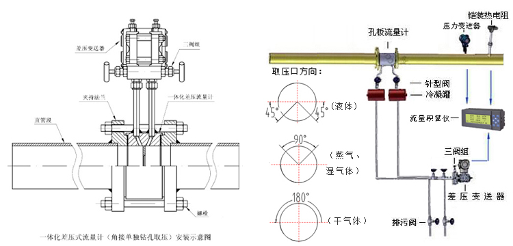 五、孔板流量计安装示意图: