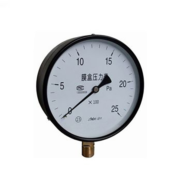 膜盒压力表的工作原理是基于波纹膜盒在被测介质的压力作用下,其自由端产生相应的弹性变形,再经拔杆一齿轮传动机构的传动并予放大,由固定于齿轮轴上的指针逐将被测值在度盘上指示出来。