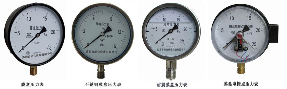 不锈钢膜盒压力表由测量系统(包括接头,波纹膜盒等),传动机构(包括拔杆机构,齿轮传动机构),指示部件(包括指针与度盘)和外壳(包括表壳、衬圈和表玻璃)所组成。